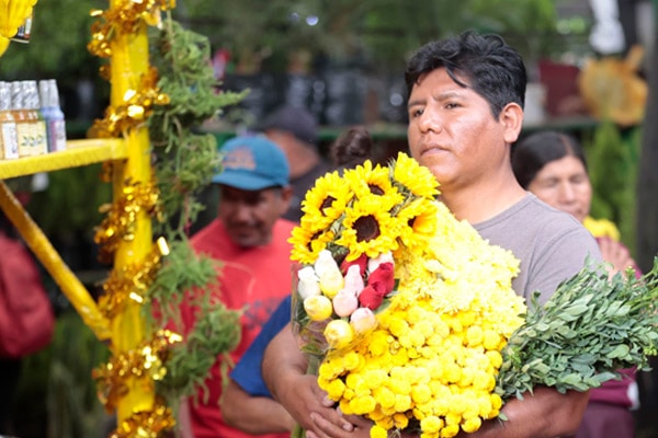 Desde muy temprano, el mercado se llena de compradores, en su mayoría familias, parejas y comerciantes, quienes buscan no solo flores, sino también otros productos tradicionales, como las flores secas, la aguaflorida y la colonia de ruda.