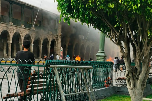 Fuera de control. Un grupo de desadaptados vienen generando disturbios en el centro de la ciudad de Ayacucho, donde han incendiado la sede del Poder Judicial de dicha región tras lanzar bombas molotov.