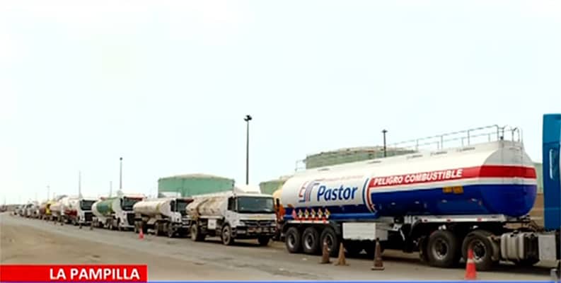 En la mañana de este 26 de octubre se reportan largas colas de camiones en la refinería La Pampilla, en Ventanilla, para abastecerse de combustible. Esta situación se viene repitiendo todo este mes, pero la situación se ha agravado por la escasez de gasolina en varias estaciones de la capital.
