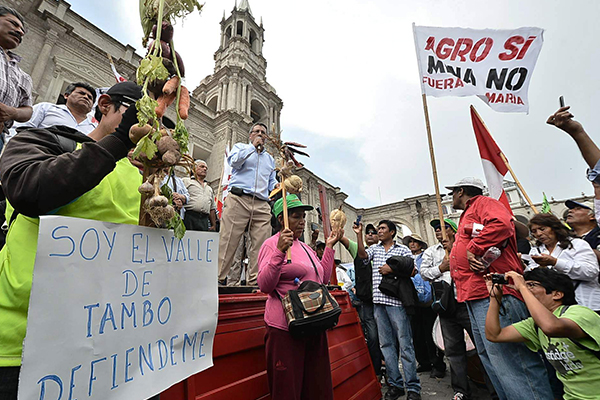Un último caso es un conflicto por asuntos de gobierno nacional que involucra a los agricultores del Valle de Zarumilla, quienes reclaman al Ministerio de Agricultura al Gobierno Regional de Tumbes la ejecución de obras de defensa ribereñas, la construcción del reservorio Faical y del puente Uña de Gato.