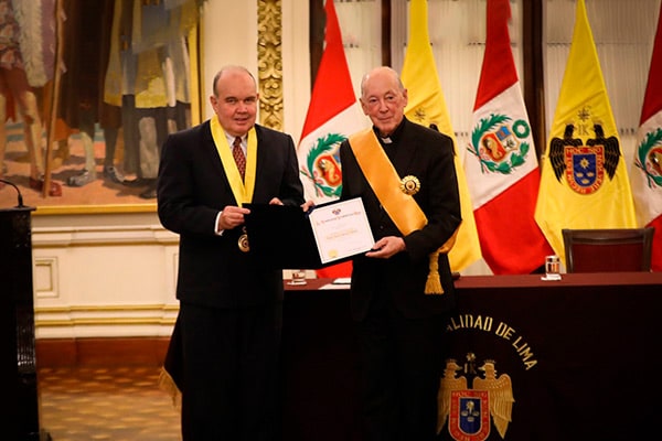 Alcalde de Lima, Rafael López Aliaga, entregó reconocimiento a uno de los representantes más visibles del Opus Dei.