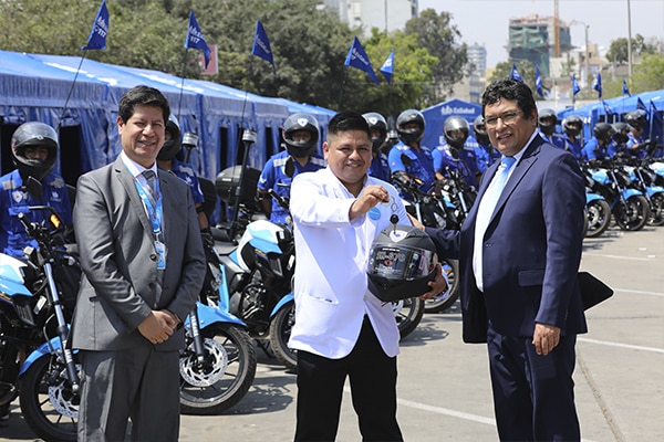 Con el fin de reforzar la atención en los lugares más alejados del país y mejorar los tiempos de respuesta de emergencias y urgencias, el presidente ejecutivo de EsSalud, Dr. Arturo Orellana Vicuña, hizo entrega de 20 modernas motoambulancias para regiones y 40 carpas nuevas para la atención en los módulos de Hospital Perú.
