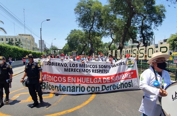 "A las 8 de la mañana médicos de todos los centros asistenciales se concentrarán en los hospitales nacionales de cada red asistencial. En Lima, lo harán en la puerta de los hospitales Rebagliati, Almenara y Sabogal. A las 11 realizarán una preconcentración en la avenida de los Héroes Navales frente al Poder Judicial. A las 12 iniciarán una marcha al Congreso de la República, acompañados de los gremios de la Confederación de Trabajadores del Perú (CTP)", informó.