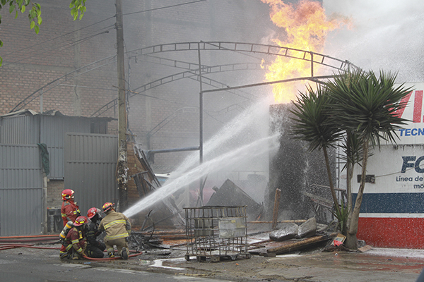 Estallido de camiones cisterna desata voraz incendio en local de conversión vehicular ubicado frente a grifo y cerca de dos colegios.