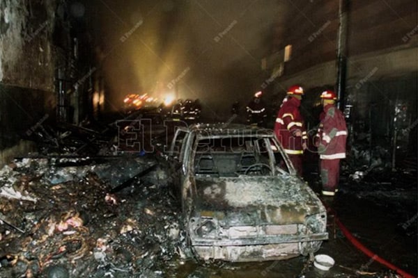 Esa fatídica noche, la detonación de un artefacto pirotécnico desencadenó un fuego que rápidamente consumió cinco galerías comerciales y se expandió a cuatro manzanas.