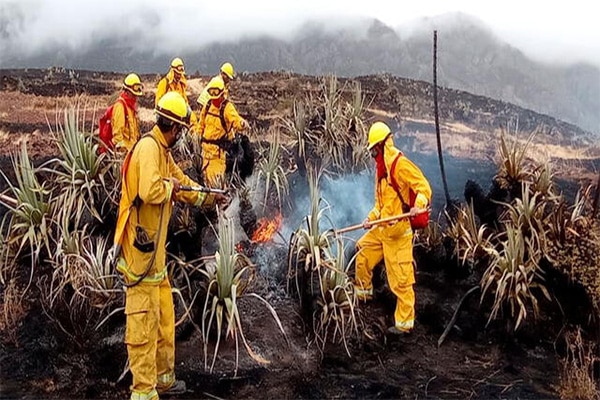 El apoyo de bomberos forestales, brigadistas y comuneros fue importante para ascender a cumbres y apagar por completo las llamas que incendiaron más de 850 hectáreas de cobertura natural, pastos y árboles.
