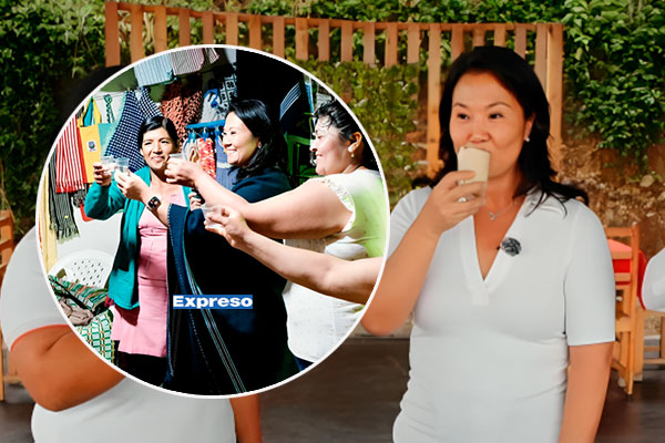 Ahí, Keiko Fujimori compartió en un brindis con las madres y mujeres que elaboran tejidos a mano. Destacó su talento y esfuerzo como ejemplo de emprendimiento femenino en la región.