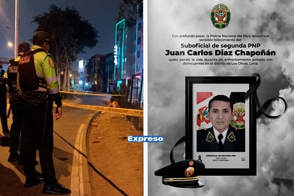 Un violento enfrentamiento a balazos con delincuentes armados cobró la vida del suboficial PNP de segunda Juan Carlos Díaz Chapuñán la noche del miércoles, en plena vía de la Panamericana Norte, a la altura del Óvalo Naranjal, en el distrito de Los Olivos.