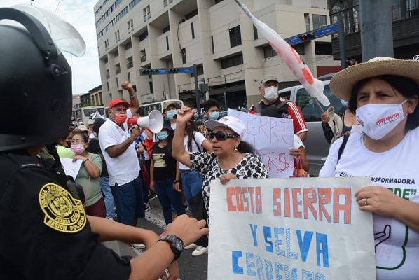 Esta manifestación se desarrolló a horas de que el gabinete ministerial, presidido por Aníbal Torres, acuda al Congreso para exponer la política general de gobierno y solicite el voto de confianza.