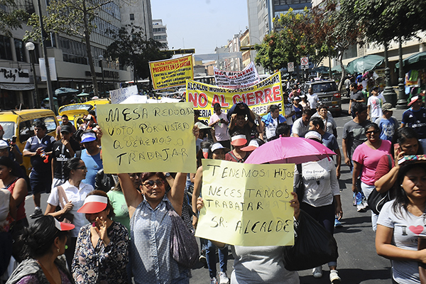 Comerciantes de la zona de Mesa Redonda y el Mercado Central marcharon ayer hacia el Congreso de la República para entrevistarse con el presidente de ese poder del Estado, Daniel Salaverry.