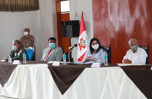 La ministra sostuvo una reunión de coordinación con el gobernador regional Anselmo Lozano y los integrantes del Comando Regional Covid-19 Sipán, encabezado por el general de brigada Walter Bracamonte.