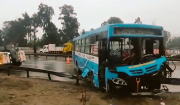 El ómnibus de transporte público quedó de costado, con la parte frontal destrozada y obstruyendo el paso por tres carriles de la Panamericana con sentido de norte a sur.