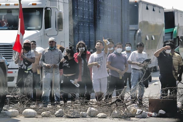 2-El país no necesita violencia. Necesitamos estar unidos y continuar con la reactivación productiva para revertir la crisis en la que estamos. Rechazamos el bloqueo de carreteras y otros actos de violencia que se han generado por parte de algunos manifestantes que buscan desestabilizar y perjudicar las protestas. Al mismo tiempo, lamentamos que se haya reportado un fallecido debido a los enfrentamientos de esta mañana en la provincia de Virú.