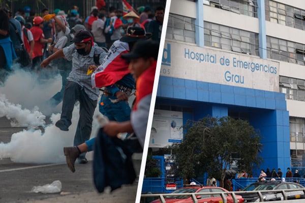 El Hospital de Emergencias Grau fue atacado por un grupo de violentos manifestantes. El nosocomio sufrió daños a la infraestructura, pues los protestantes rompieron los vidrios de la entrada ocasionando, además, que el personal de vigilancia resulte herido.