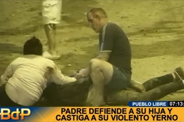 Cansado de ver que su hija era continuamente maltratada por su esposo, un adulto mayor dio tremenda paliza al marido de su hija, luego de enterarse que el sujeto la agredió físicamente al llegar ebrio a su casa en el distrito limeño de Pueblo Libre.