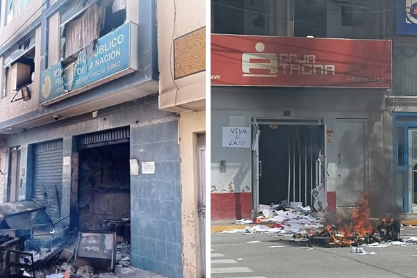 Con respecto a las sedes quemadas en Ilave, aunque no se han reportado heridos o muertos, cayeron una comisaría, una farmacia y varias entidades bancarias.