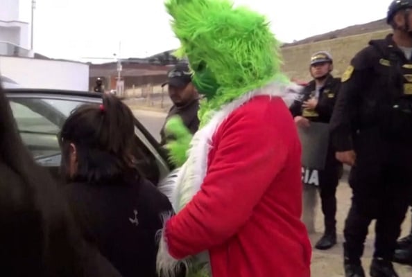 Un agente del Grupo Terna del Escuadrón Verde, disfrazado de Grinch, desmanteló una banda familiar de microcomercializadores de drogas en el distrito de San Bartolo, al sur de Lima.