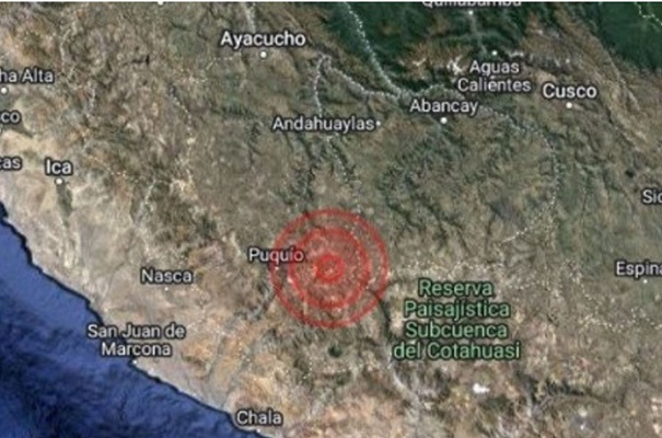 El evento sísmico se registró a las 5:22 a.m. y tuvo como epicentro una zona ubicada a 23 kilómetros al sur de la localidad de Puquio, en la provincia de Lucanas, a una profundidad de 97 kilómetros.