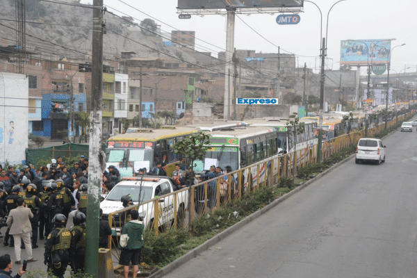 SJL: Transportistas detienen tránsito como protesta por crímenes e incapacidad del Gobierno