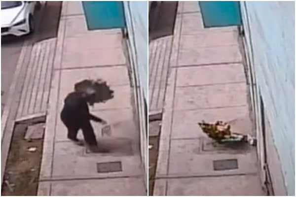 En las imágenes difundidas por el referido medio, se aprecia a un sujeto vestido de negro que llega a la vivienda a dejar estos objetos en la puerta de Serrano.