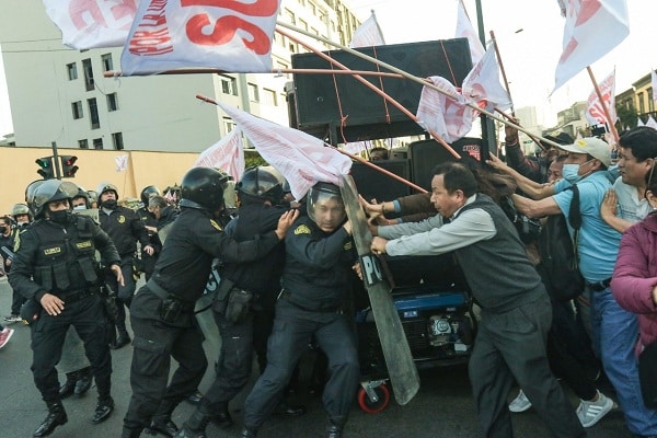 Se trató de una manifestación pacífica, no obstante denuncian que en las inmediaciones del Congreso de la República los protestantes fueron reprimidos con violencia por parte de la Policía Nacional, según señalan por órdenes del cuestionado ministro del Interior Willy Huerta, lo que resultó en varios docentes y auxiliares heridos.