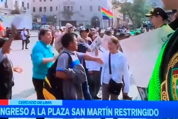"La Plaza San Martín es un lugar prohibido de concentraciones. Pueden hacer sus manifestaciones en el perímetro y tienen todo el derecho de hacerlo. Tomando las consideraciones del caso, se sacó a un grupo reducido de 6 personas que intentaron ingresar", apuntó.