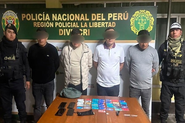 La Policía Nacional del Perú (PNP) desarticuló en Trujillo a un grupo delictivo que se dedicaba al cambiazo de tarjetas en cajeros automáticos, tras sorprender a cuatro de sus integrantes en flagrancia cuando operaban en una agencia del BBVA Continental.