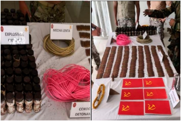 Tras un operativo helitransportado conjunto, los agentes en una labor de inteligencia ubicaron una “caleta” que contenía 1 balde plástico con una bolsa de polietileno en cuyo interior se halló propaganda subversiva, 03 linternas, 78 explosivos caseros, 01 fulminante eléctrico, una mecha lenta, un cordón detonante, 634 municiones de fusil 7.62x39 mm.