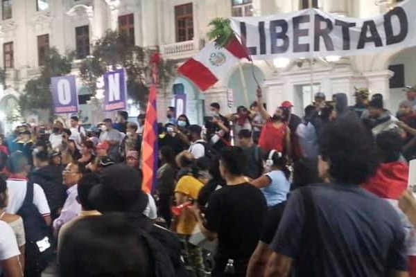 La manifestación ha sido denominada 'No al toque de quiebra', y sus participantes cuestionan que el encierro -como ya ocurrió durante la administración del exmandatario Martín Vizcarra- perjudicará a quienes viven con lo que pueden generar en el día.