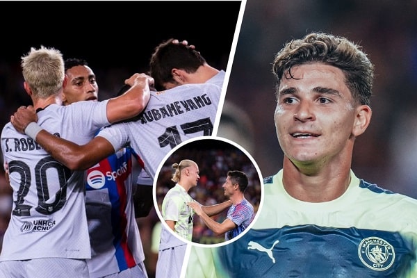En el minuto 22, un error de Iñaki Peña, portero culé, fue aprovechado por el argentino Julián Álvarez y, así, convirtió el primero para el conjunto de 'Pep' Guardiola.