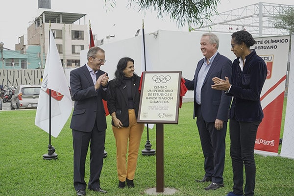 Presentes en el acto de develación de la placa que reconoce a la UPC como Centro de Estudios e investigación Olímpica estuvieron la secretaria general del COP, Jenny Martínez, la dirigente y Jefa de Misión del COP, Leyla Chihuán; el CEO y rector de la UPC Edward Roekaert, CEO y rector de la UPC, Jack Zilberman, decano de la facultad de Negocios de la UPC y Alessandra A. Ravettino Canisto, directora ejecutiva del Campus Villa de la UPC en Chorrillos, lugar donde se llevó a cabo la ceremonia.
