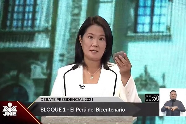 En el debate presidencial en Arequipa, la candidata presidencial Keiko Fujimori inició su alocución “rechazando categóricamente los sucesos de violencia”, en la Marcha por la democracia.