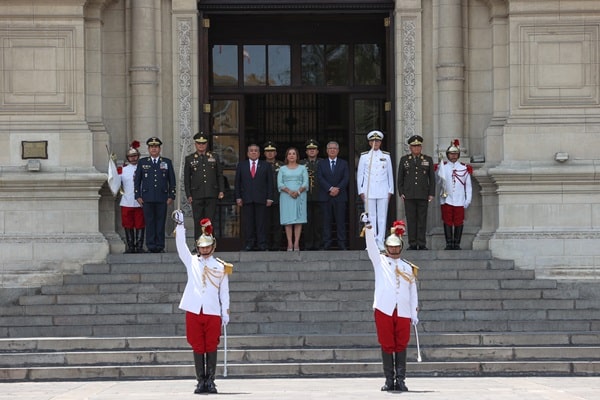 Jugada de riesgo en crisis de los Rolex. Jefa de Estado posó con altos mandos del Comando Conjunto de las FA.AA. en cambio de guardia en Palacio.