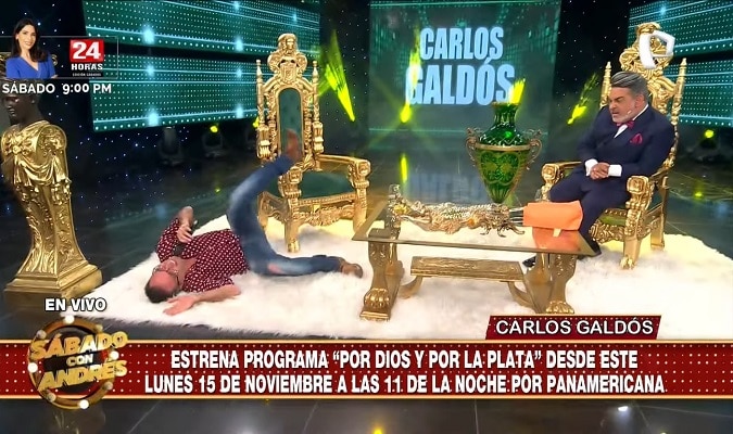 Cuando le agradecía por su asistencia en ‘Porque hoy es sábado’, Carlos Galdós interrumpió la despedida, se levantó y, gritando ‘Luz Clarita’, se tiró al piso tal como lo hacía Hurtado a finales de la década de 1990.
