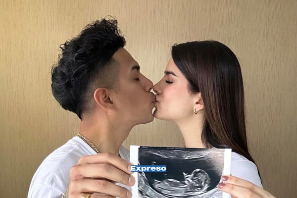 Todo acompañado de una foto romántica donde ambos se dan un tierno beso, mientras sostienen la ecografía en sus manos.