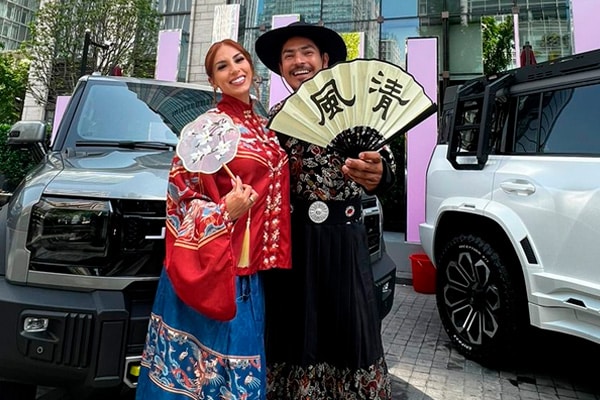 Agradeció a los directivos de una empresa de automóviles, de la cual es imagen, por permitirle llevar a la mujer de su vida a este periplo por el continente asiático.