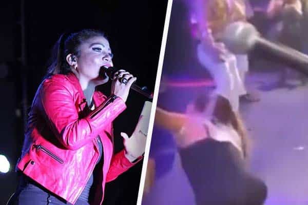 Y es que la artista se encontraba deleitando al público con sus mejores temas, cuando sufrió un tropiezo, del cual se levantó inmediatamente con el apoyo de sus músicos y siguió su presentación. Luego de unos segundos, le pidió al público no subir el video a TikTok.