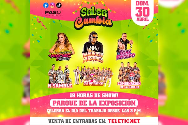 Cabe recordar que el evento musical ‘Salsa Cumbia’ se realizará este domingo 30 de abril a partir de las 3 de la tarde en el Parque de la Exposición. Las entradas ya están a la venta en Teleticket y a través de este link bit.ly/salsaycumbia.