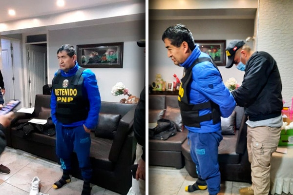 El burgomaestre de Carabayllo, de las filas de Alianza Para el Progreso, quien se encontraba vestido de azul, fue enmarrocado y se le vio con el chaleco de detenido, tras un despliegue policial en el que participaron miembros de SUAT.