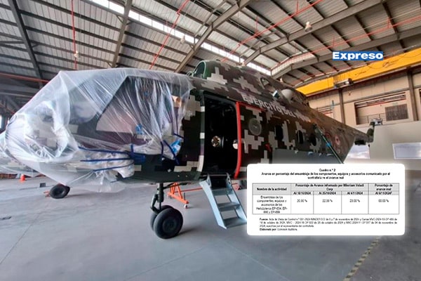 Milenium Veladi Corp, empresa que debe entregar tres helicópteros al Centro de Mantenimiento Aeronáutico del Ejército (Cemae), envió una carta a EXPRESO afirmando que está cumpliendo el contrato. Sin embargo, un informe de Contraloría General de la República (CGR) detectó que no se ha sustentado el avance del servicio.