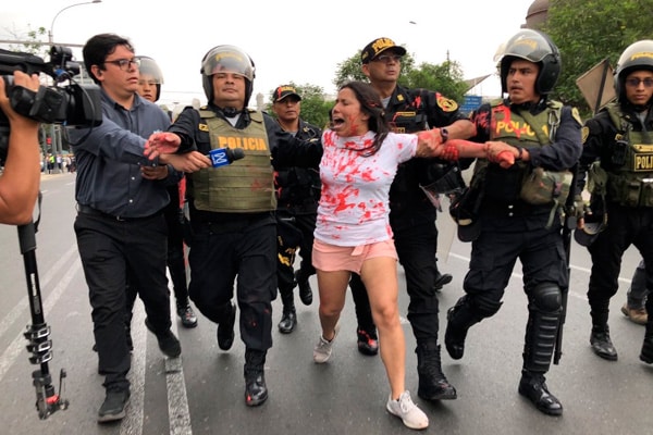 La Procuraduría Pública Especializada en Delitos Contra el Orden Público denunció a la excandidata al Congreso, Zaira Arias, por agredir a policías al arrojar pintura roja sobre ellos y patearlos durante la Marcha por la Paz del pasado 3 de enero.