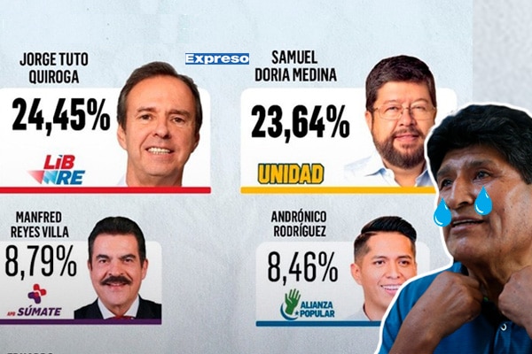 La cuarta encuesta nacional de intención de voto, elaborada por la empresa Spie SRL y difundida por el medio El Deber, colocó a Jorge 'Tuto' Quiroga en el primer lugar con 24,45% de apoyo, apenas por encima del empresario Samuel Doria Medina, que obtuvo 23,64%.