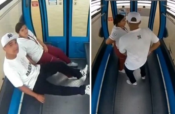 Sin embargo, lo que no advirtieron fue que la cámara de seguridad del teleférico los estaba enfocando directamente y captó la íntima escena. La bochornosa secuencia, que ya es viral en redes sociales, duró varios segundos.
