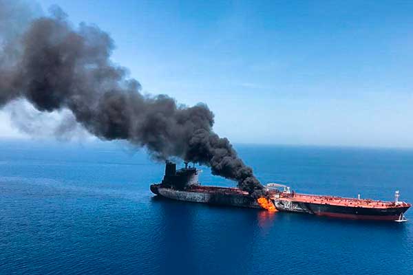 La deflagración dejó el barco en llamas y una enorme columna de humo negro. La tripulación fue rescatada por un barco que se encontraba en las cercanías y trasladada a una embarcación iraní. El segundo petrolero, operado por una firma japonesa, fue impactado presuntamente por un torpedo. La tripulación también fue rescatada y se encuentra a salvo. Una unidad naval de Estados Unidos en Bahréin dijo que había asistido a los dos buques petroleros luego de recibir llamados de emergencia.