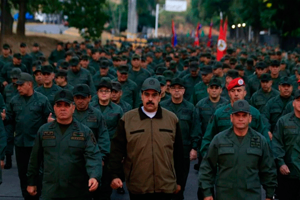 “Estamos juntos otra vez, en marcha. Porque hay que despertar y avivar el fuego sagrado de los valores militares venezolanos para el combate que estamos dando contra el imperialismo, los traidores y golpistas", dijo el mandatario de facto, junto a su ministro Defensa, Vladimir Padrino López.