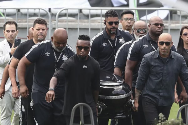 Antes del inicio del evento, Edinho, hijo de Pelé, y el exjugador Zé Roberto cargaron el ataúd, hasta una carpa situada en el centro de la cancha, un espacio que está reservado para los familiares.