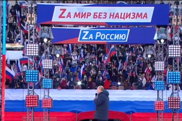 La cadena de televisión rusa RTVE transmitió en vivo el show musical nacionalista que agrupó a miles de rusos izando su bandera con orgullo. En el espectáculo, el propio presidente Vladímir Putin se presentó enviando un fuerte mensaje a sus connacionales, "queremos liberar a Donbás del genocidio".