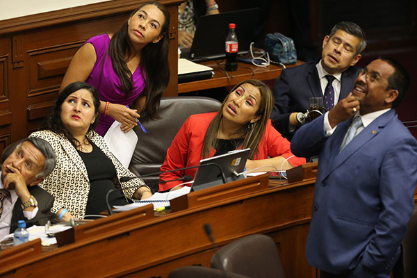 Luis Galarreta, César Segura y las legisladoras fujimoristas que los acompañan en esta imagen parecen esperar un milagro en los dos últimos años que les quedan como “padres” de la Patria. Y es que su errático desempeño en el Congreso ha hecho que el respaldo popular que antes tenían se evapore por completo. ¡Habrán aprendido la lección?
