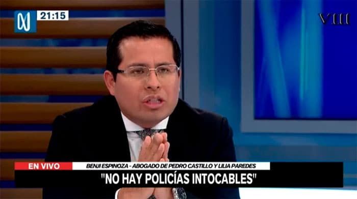 El abogado del presidente Pedro Castillo, Benji Espinoza, aseguró que no existen «policías intocables», en relación al coronel PNP Harvey Colchado.