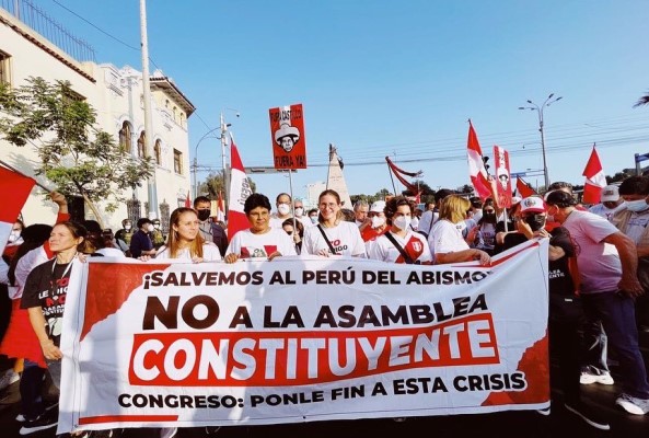 Cientos de ciudadanos participaron en una marcha de rechazo a Castillo y a la realización de una asamblea constituyente o a la posibilidad de que fuera consultada junto con la realización de los comicios locales y regionales.